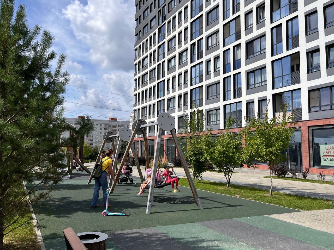 В коммерческих помещениях на первых этажах — продуктовые магазины, пекарни, фитнес-клуб, аптека и пункты выдачи маркетплейсов. В радиусе 1–2 км от дома расположены 5 школ, более 10 детских садов, супермаркеты, отделения почты и банка, поликлиника для взрослых.
